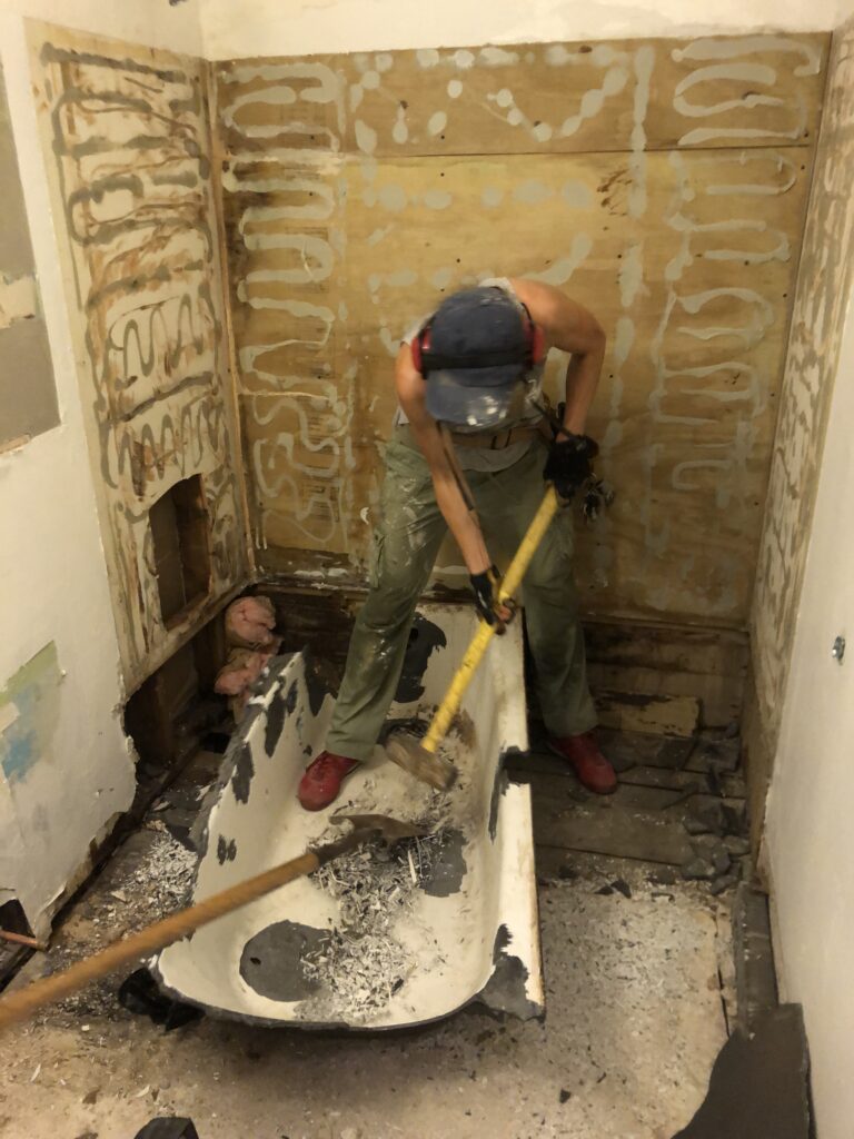 The fun part here was coming up with a nimble enclosure to satisfy the OSHA requirement that any exterior work which generates dust be encapsulated from one’s hapless neighbors.